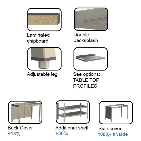 Home » Produkter » Rustfritt utstyr - Rengjøring » Arbeidsbenk » Arbeidsbenk med underhylle
