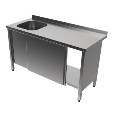Rustfri benk med skap / Arbeidsskap med kum