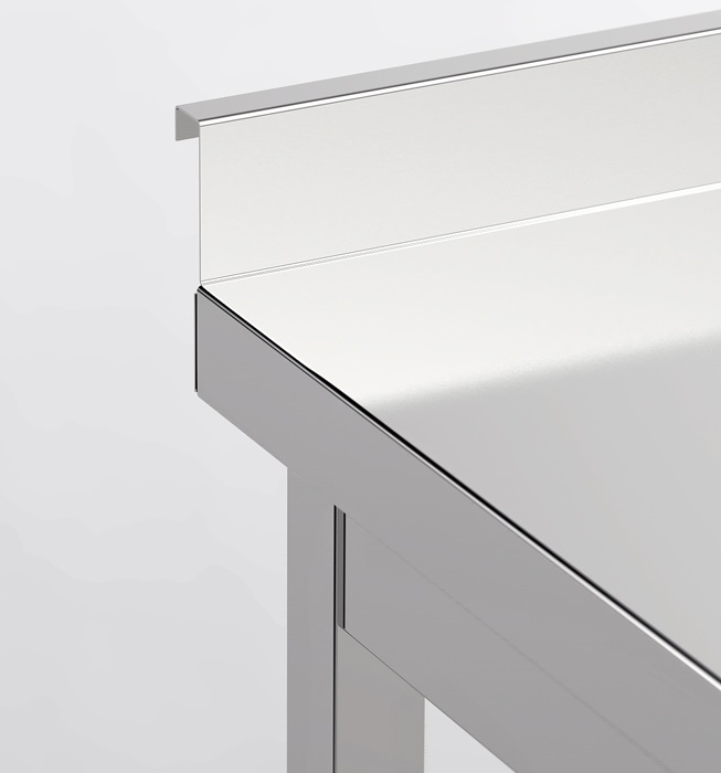 Topplate av børstet rustfritt stål, 40 mm tykkelse forsterket med sponplate