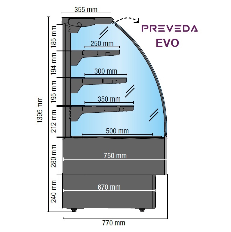 Utstyrt med 3 kjølte justerbare glasshyller med LED lys