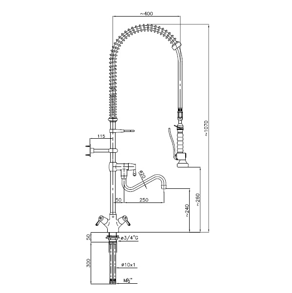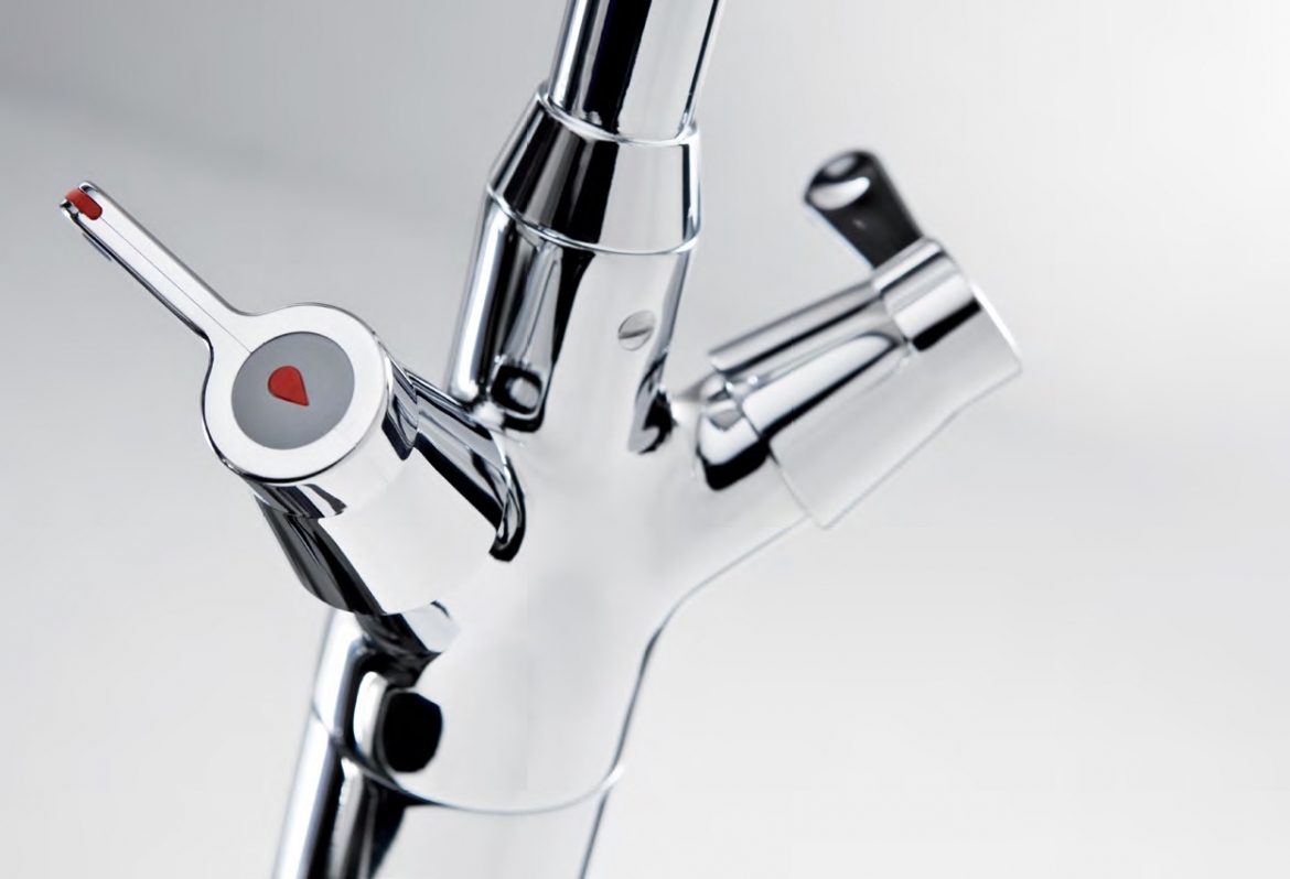 Dusjhåndtak med interne komponenter i rustfritt stål