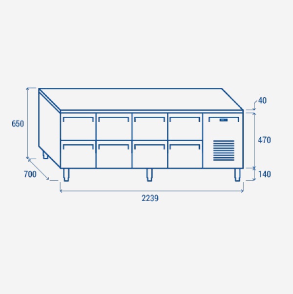 Home » Produkter » Kjøl og frys » Kjølebenk / Frysebenk / Grillbenk » Grillkjølebenk » Grillkjølebenk 224×70 cm8 skufferUGN4180