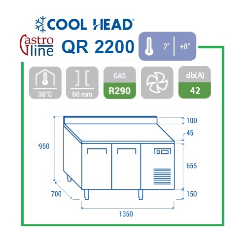 Kjølt arbeidsbenk med 2 dører, Cool Head