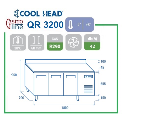 Kjølt arbeidsbenk med 3 dører, Cool Head