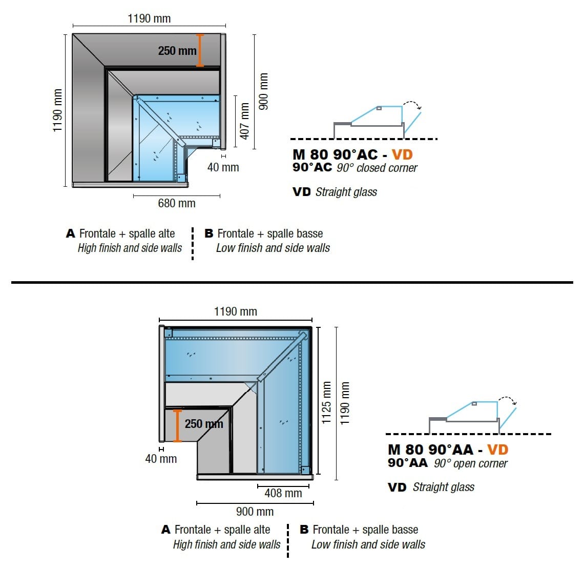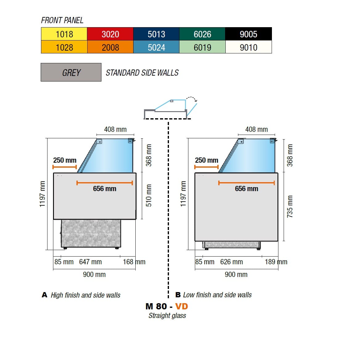 Valg mellom: A- Høy front panel eller B – lav front panel